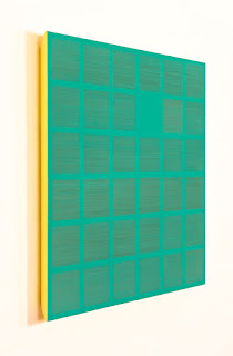Whisper III, 2025, silverpoint, Flashe Vert de Gris acrylic on wood panel, 24"x24"x2"